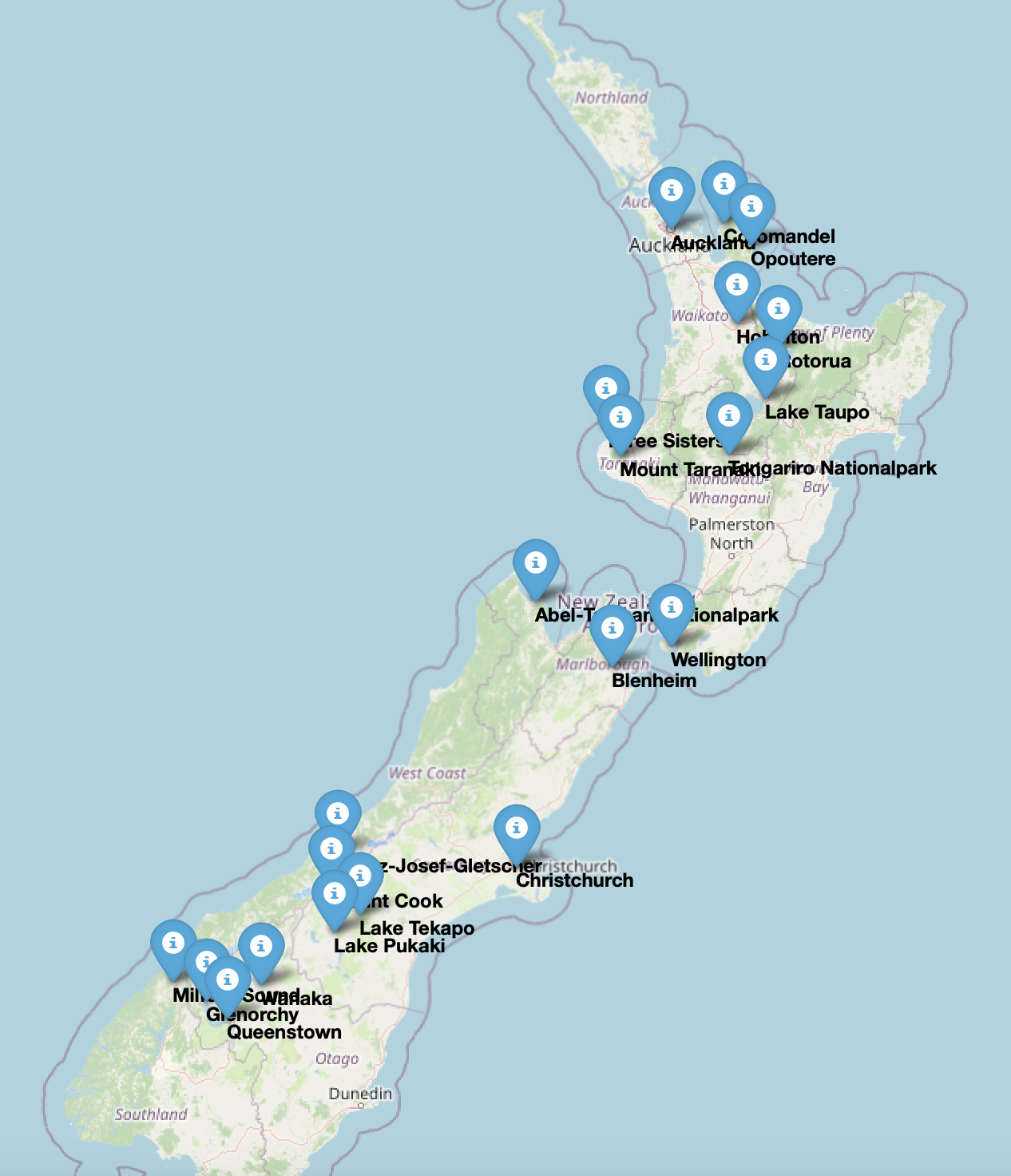 Woche 1 und 2 haben wir auf der Südinsel verbracht. Die Stopps, die uns am besten gefallen haben, kommen jetzt.